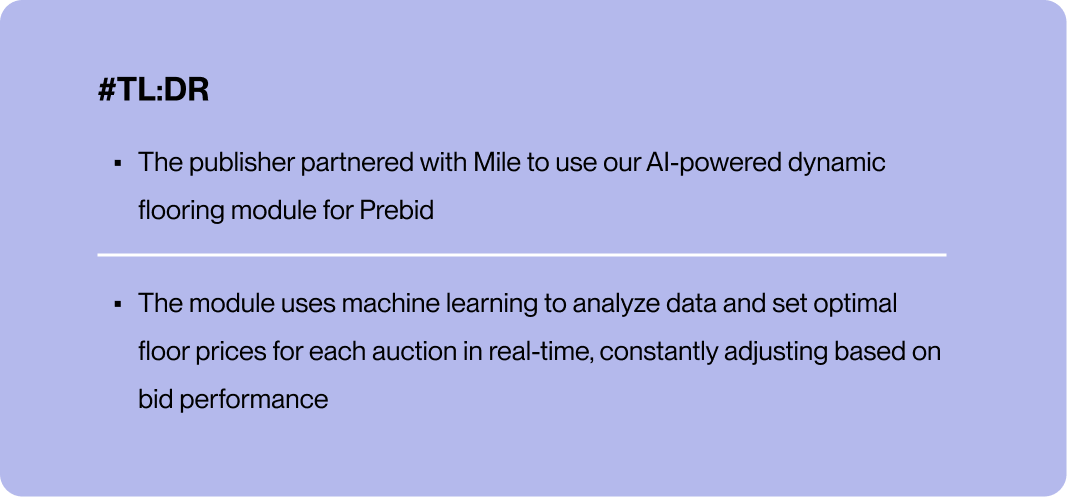 The publisher, determined to bridge the gap between GAM and Prebid Stack, partnered with Mile to implement its AI-powered dynamic flooring module - a cutting-edge solution specifically designed for Prebid.