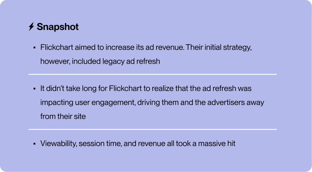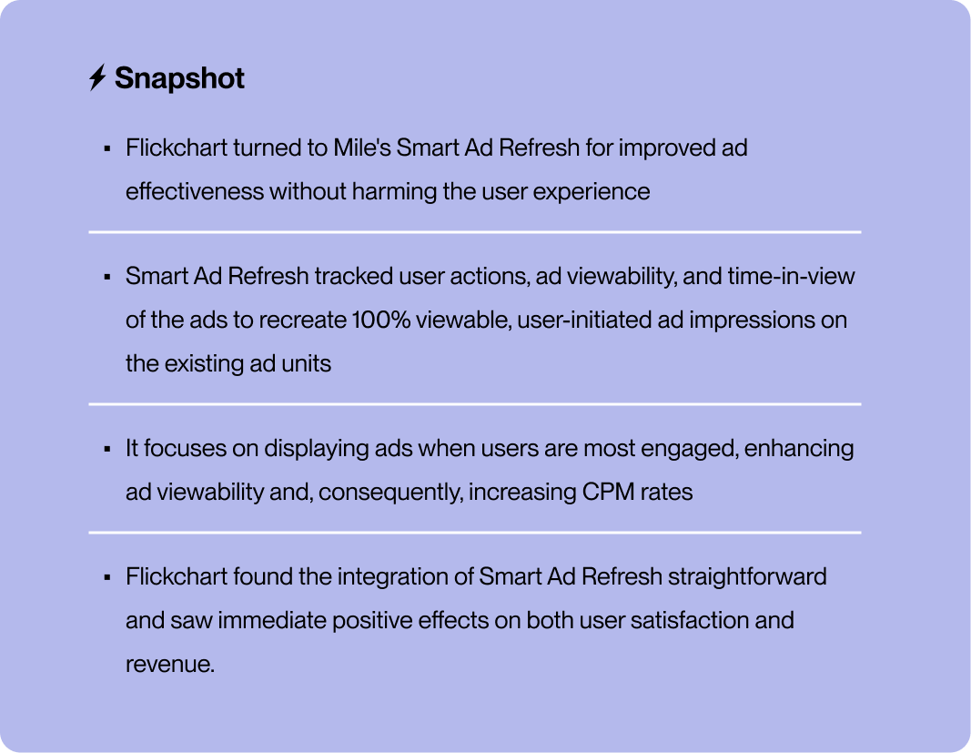The search for a better solution led Flickchart to Mile’s Smart Ad Refresh.