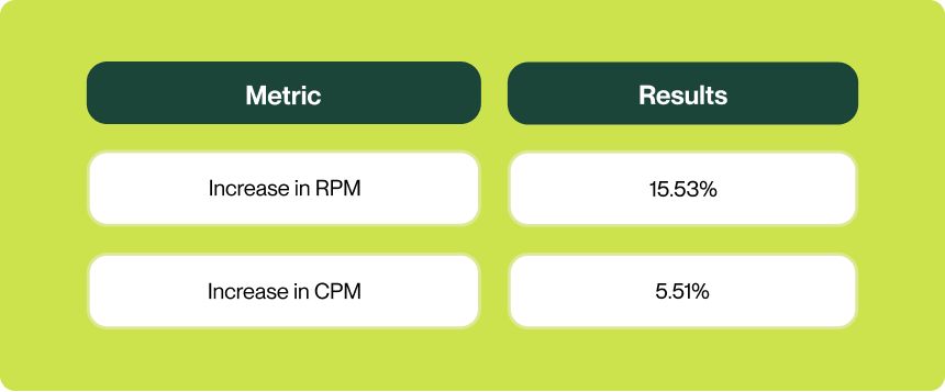 Mile’s AI Dynamic Flooring consistently delivered stronger returns across 400 million+ ad opportunities, ensuring sustainable performance across the publisher’s monetization stack.