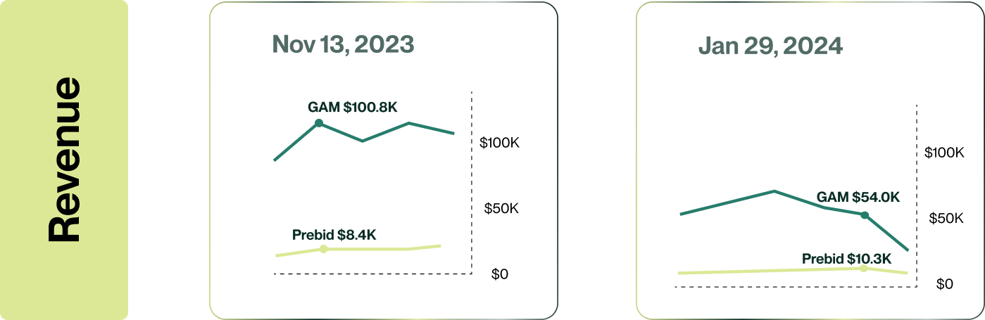 Since implementing the AI-powered dynamic flooring module in the fourth quarter of 2023, the publisher experienced a 110% increase in Prebid revenue contribution. Within a short timeframe (4-6 weeks), Prebid's share grew from 10% to 21% of total revenue.