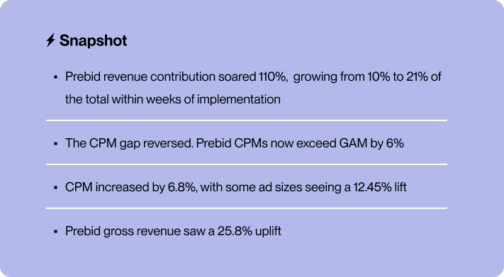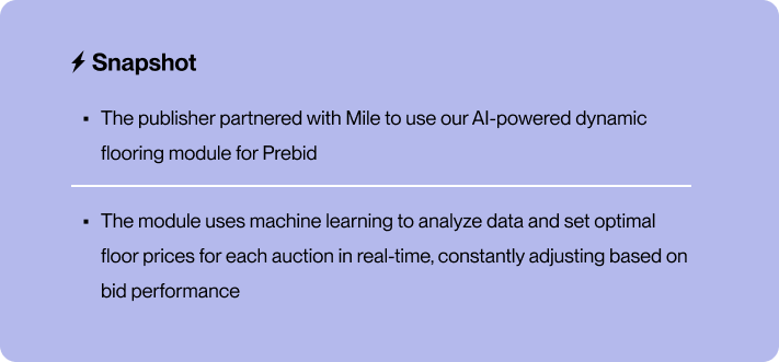 The publisher, determined to bridge the gap between GAM and Prebid Stack, partnered with Mile to implement its AI-powered dynamic flooring module - a cutting-edge solution specifically designed for Prebid.